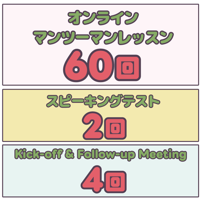 - オンラインマンツーマンレッスン:60回