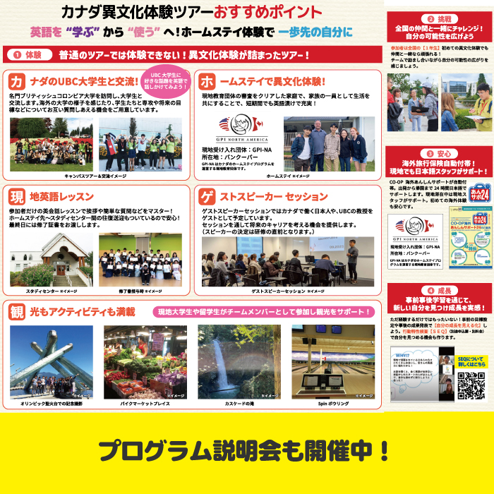 【事前受付】新入生限定カナダ異文化体験ツアー8日間